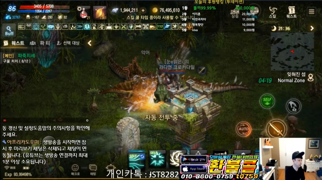 韓國《天堂M》神人玩家똘끼100%以超快速度練功。