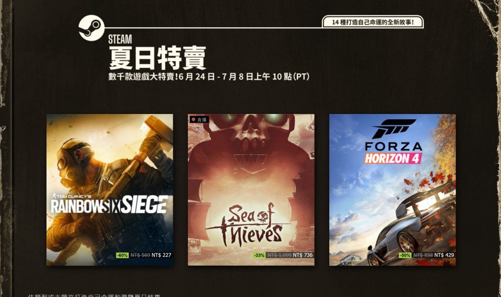 一年一度的Steam夏日特賣於今(25)日凌晨正式上線,本次的特賣包括了《極限競速 地平線4》、《Valheim》等多款人氣作品。另外,本次Steam還特別開設了「打造自己命運」特別頁面,只要完成各分類的特別任務,就可以獲得小禮物。