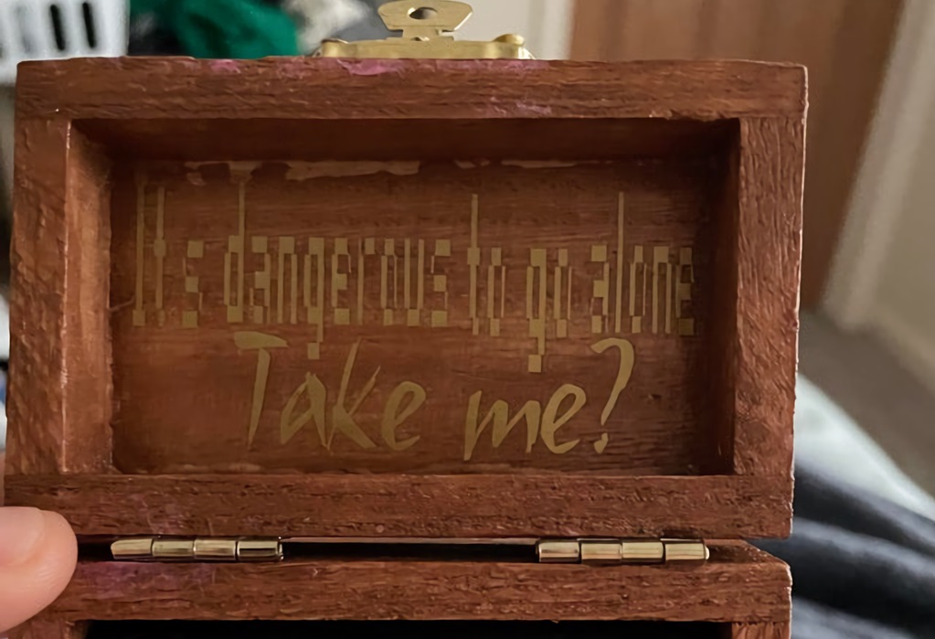 被求婚的玩家在答應請求後,日前在 Reddit 上發文表示「昨晚我女朋友用這個向我求婚」並曬出了裝著戒指的薩爾達傳說風格盒子,盒子外頭刻有遊戲中架空國家「海拉魯」的紋章,打開盒子後便可以看到前段用像素風寫著「It’s dangerous to go alone!Take me?」(一個人去很危險,帶上我吧?)的字樣。