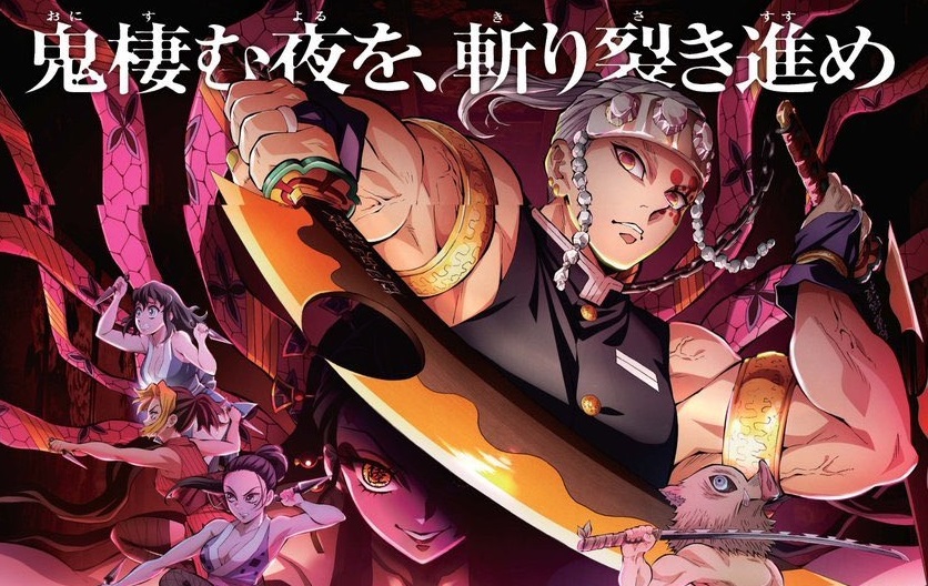 「遊郭篇」緊接著《鬼滅之刃劇場版 無限列車篇》之後的劇情,是「音柱」宇髄天元大顯神威的篇章。新的視覺圖中除了大家熟悉的主角竈門炭治郎、彌豆子、伊之助、善逸之外,還有「音柱」宇髄天元,以及炭治郎一行人即將對上得更強大的鬼。