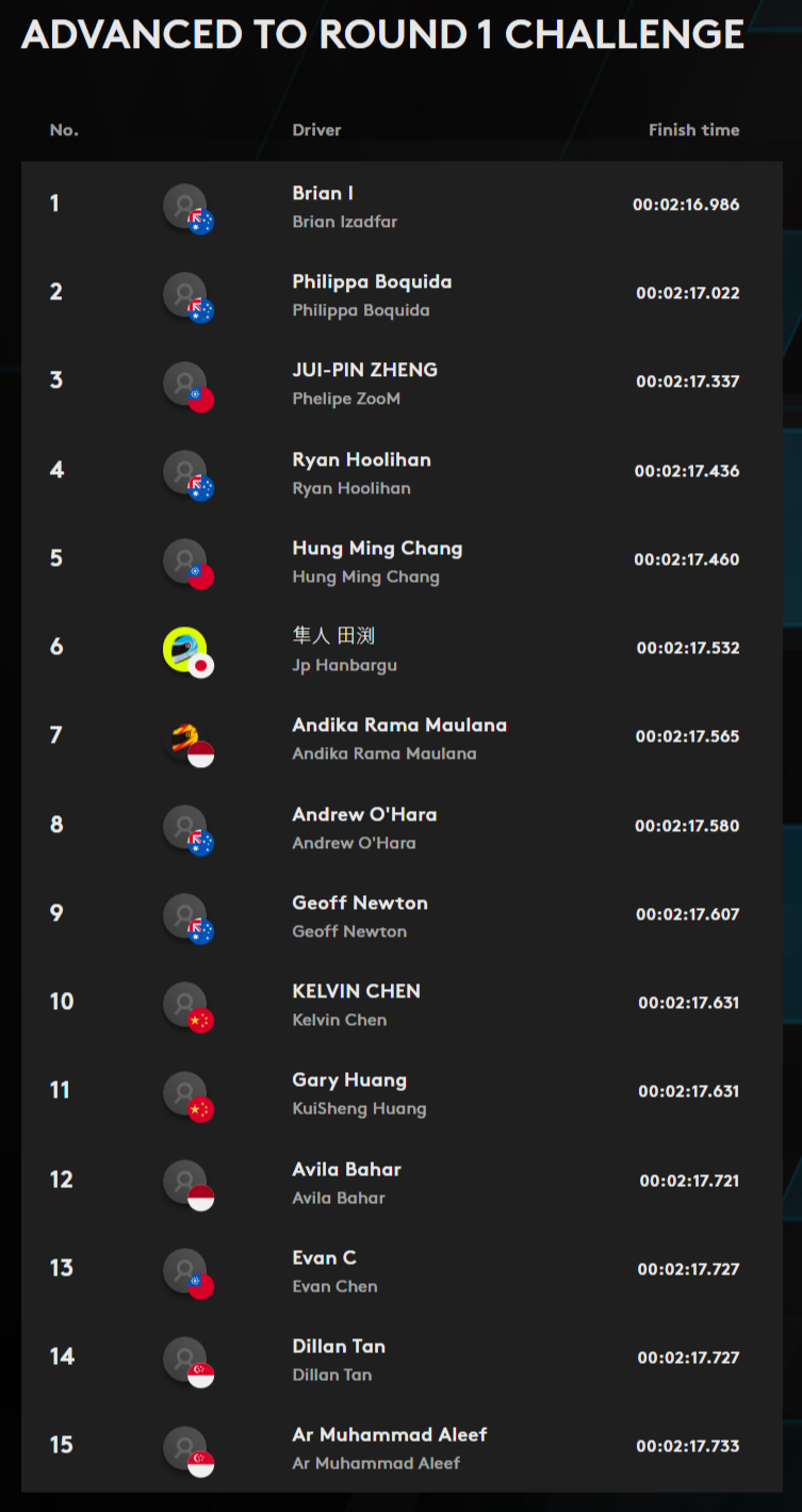 截至目前為止,各區第一輪賽事已宣告結束,包含台灣、日本、澳洲、印尼、土耳其等各國皆有選手上榜,實現全球共同競速的超火熱賽車賽事夢想。今年台灣區特別邀請到國際知名賽車手陳意凡擔任賽事推廣大使,為已經邁入第四年的G Challenge疾速大賽全球對決宣傳,並於第一輪賽事中出賽勇奪第13名佳績,期盼激起更多賽車迷報名參賽。