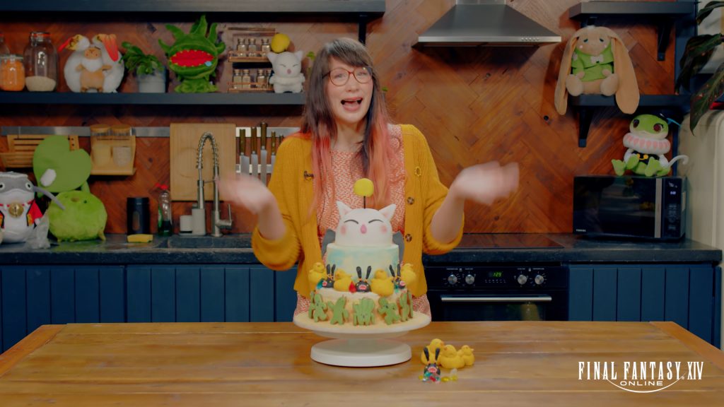 而本次她特別採用了多種FF元素來打造這次的訂單。在這個三層的檸檬海綿蛋糕中,不只是在蛋糕頂端有著可愛的莫古力,第二層則由FF系列的知名吉祥物陸行鳥和魔石精來坐鎮,而最底層則有著同樣知名的仙人掌怪來做為基底。相信每個FF玩家,在看到這個蛋糕的當下都難免會心一笑。