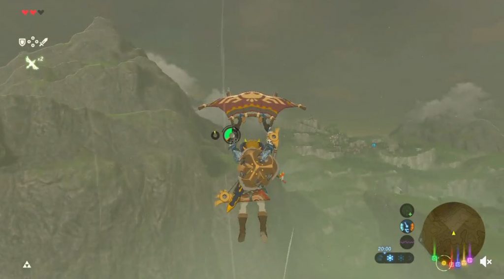 接下來就是最關鍵的時刻,在空中石玩家必須使用火箭射擊暖暖草果使它燃燒,接著燃燒起來的草果又會再一次引起新一波的上升氣流,將林克帶往更高處,不斷重複這個動作,就能達到前所未見的高度。從畫面中能看到, tetr4_hc 僅重複了兩次,高度就已經快到山脈的中間。