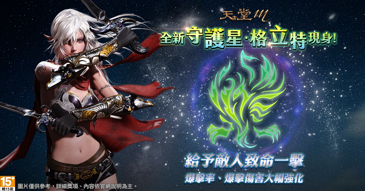 全新守護星「格立特」將於近期推出,可大幅提升玩家HP、爆擊傷害、爆擊機率、爆擊抵抗等能力,適合刺客型職業黑妖、死神等玩家使用。