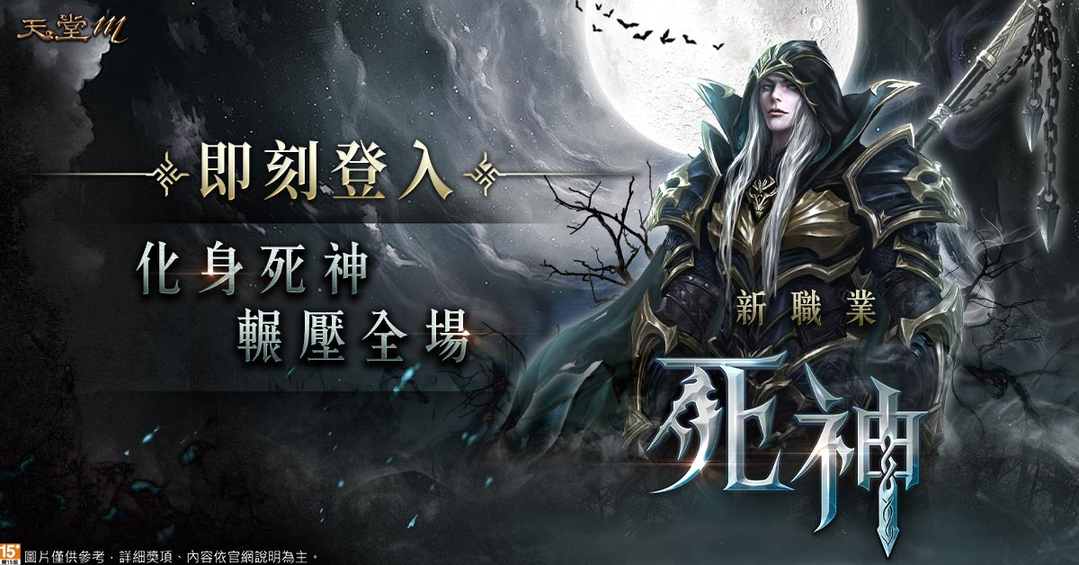 由遊戲橘子代理韓廠NCSOFT手遊《天堂M》將於明(1)日正式推出【穿梭戰場的無情生命收割者.全新職業死神】為遊戲中最強的刺客型職業。9月1日中午12:00將開放全新伺服器「鐮刀死神」搶先創角,於晚間18:00正式進入遊戲,伺服器將舉辦等級排名活動等台版專屬活動。