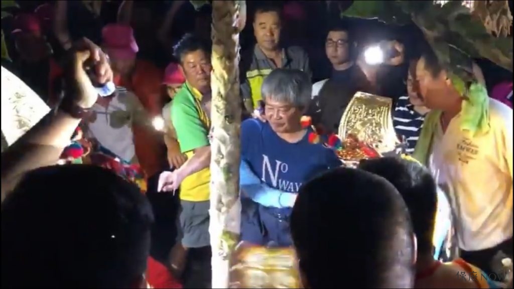 神明降駕指示移除木瓜樹。(圖/翻攝自影片,蚵子寮通安宮廣澤尊王 Unofficial Fanpage 臉書專頁授權) 夜巡隊伍出發後行經一個果園,清德堂的主神五福大帝忽然降駕於乩身之上,指示要將某棵木瓜樹移除。清德堂為當地知名的家將館,主神為五福大帝。五福大帝降駕之後手持鐮刀指著某棵木瓜樹,什府大神(八家將)隨即將木瓜樹包圍,此時已有幾位將爺發起來。五福大帝以鐮刀做了一個砍除的動作,隨即在眾人的合力下,徒手將那棵木瓜樹連根拔起。