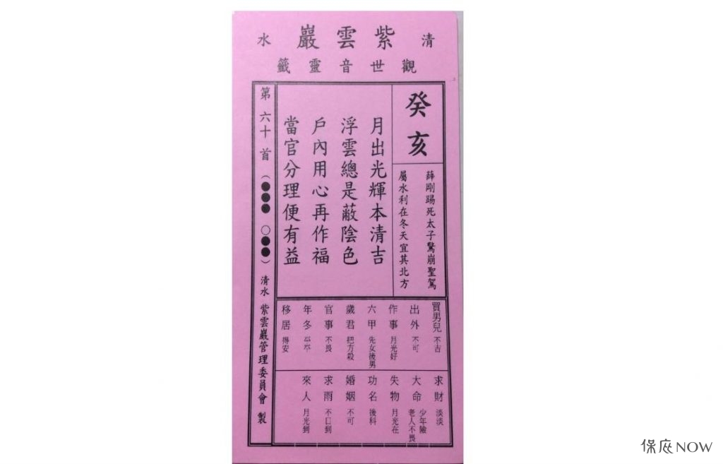 六十甲子第六十籤。(圖/翻攝自紫雲巖觀世音菩薩六十甲子靈籤粉專) 本篇要講的是六十籤詩第六十首,內容如下: