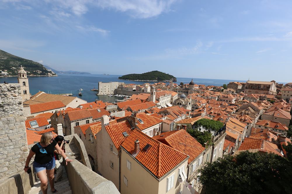 搭乘纜車前往高處,杜布羅夫尼克的城市輪廓清楚可見,橢圓形的高聳城牆將古城堅固地圍起,城牆外即是一望無際的亞德里亞海,港灣裡終年停靠著大大小小的遊艇與漁船,代表著這是一座與海洋臍帶相連的城市。