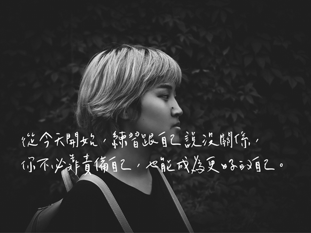 從今天開始,練習跟自己說沒關係吧!有些時候就是會有意外發生,世界有些時候就是無法正常運轉,如果我們選擇接受,而不是自我批評,對自己疼惜而不是懷疑生命,那麼在我們腳底下那一望無際的空虛,或許就有機會,慢慢地被填滿起來。