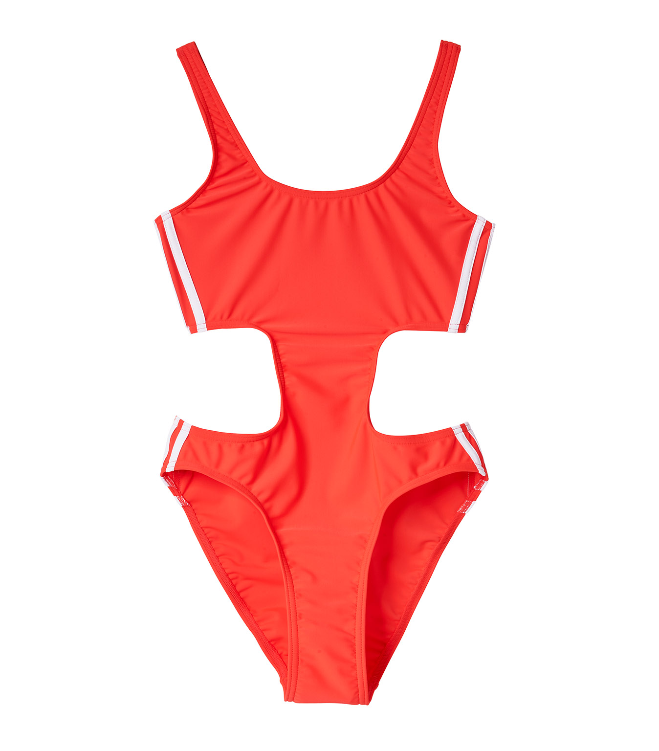 adidas Originals 攜手米蘭時尚品牌 Fiorucci,推出 adidas meets Fiorucci 聯名系列,以渡假感夏日衣櫃為靈感,充滿盛夏氣息的飽和紅橙色調,打造泳池派對單品。將 80 年代復古元素搭配經典三條線,打造挖腰款開高衩連身泳衣,簡潔又鮮明的時尚風格,展現運動美學。