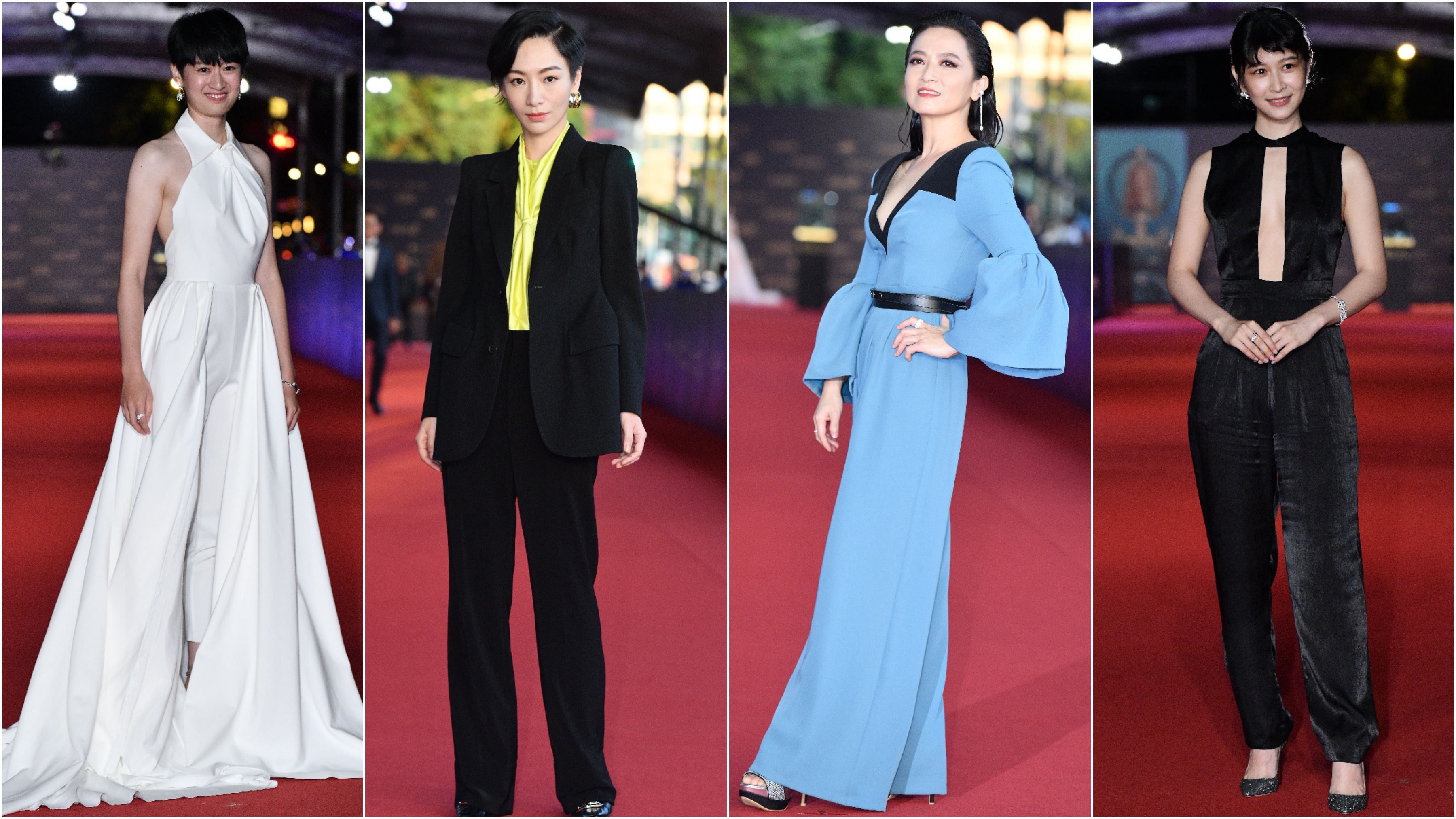 ▲陽靚、江沂宸、葉慈毓、謝瓊煖以帥氣褲裝步上紅毯,不只和女星比美,還要和男星比帥。(圖/NOWnews攝影中心,2019.10.05)