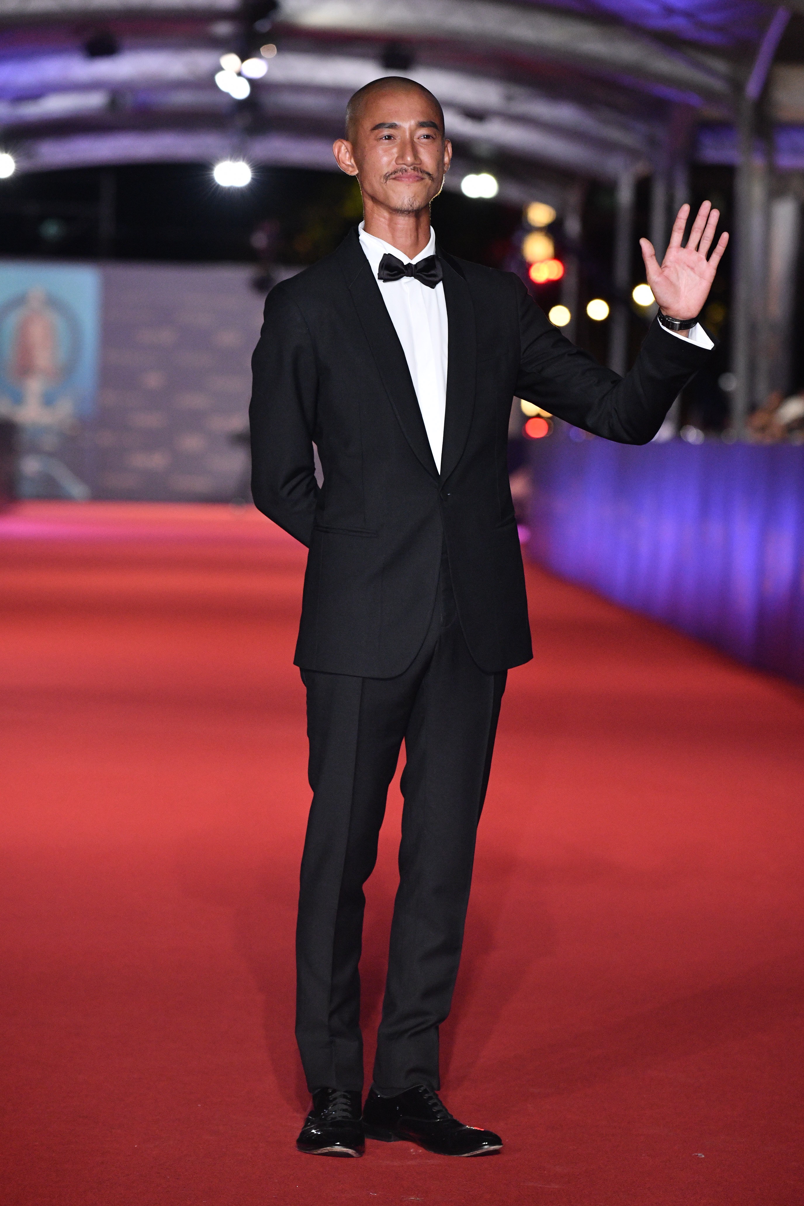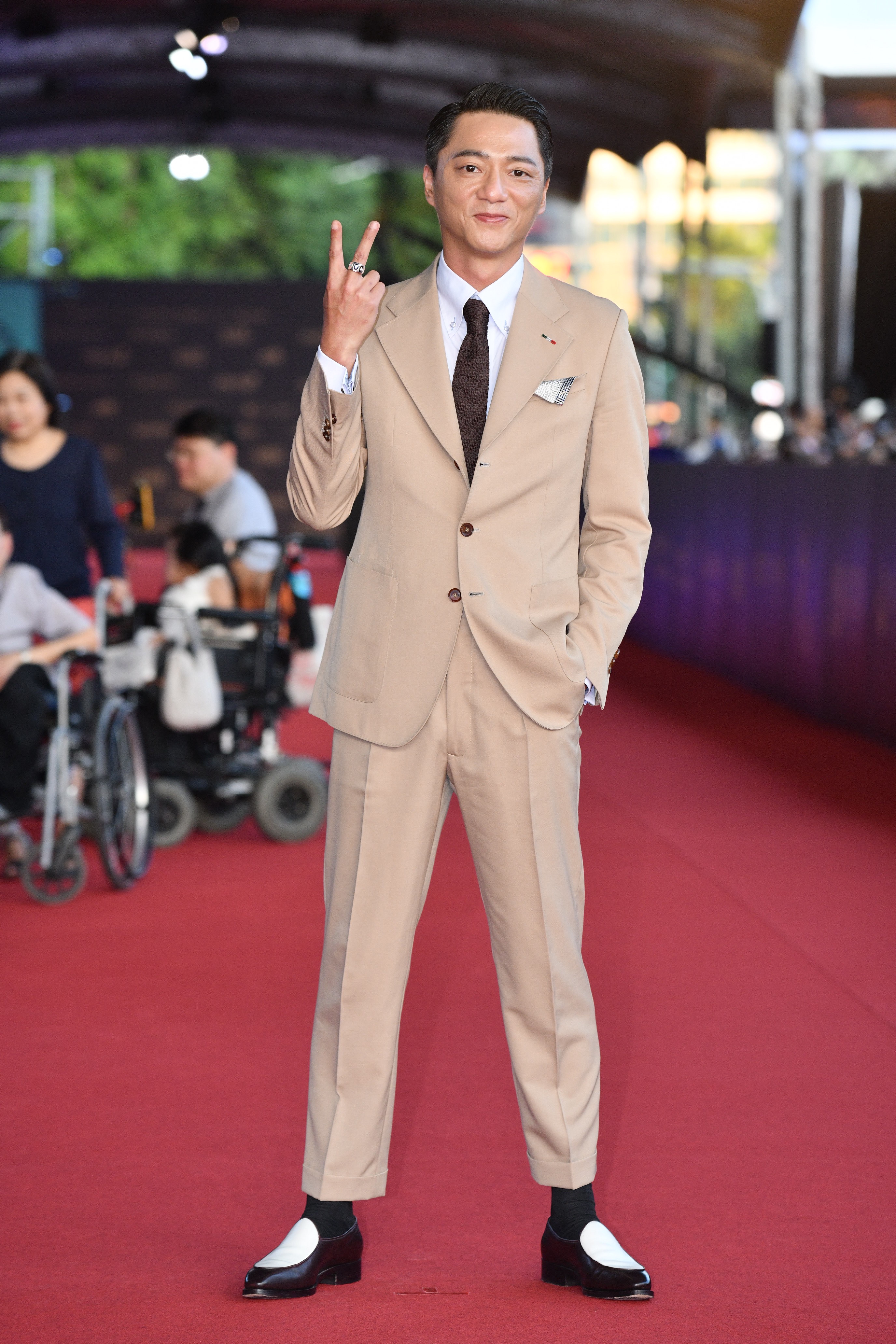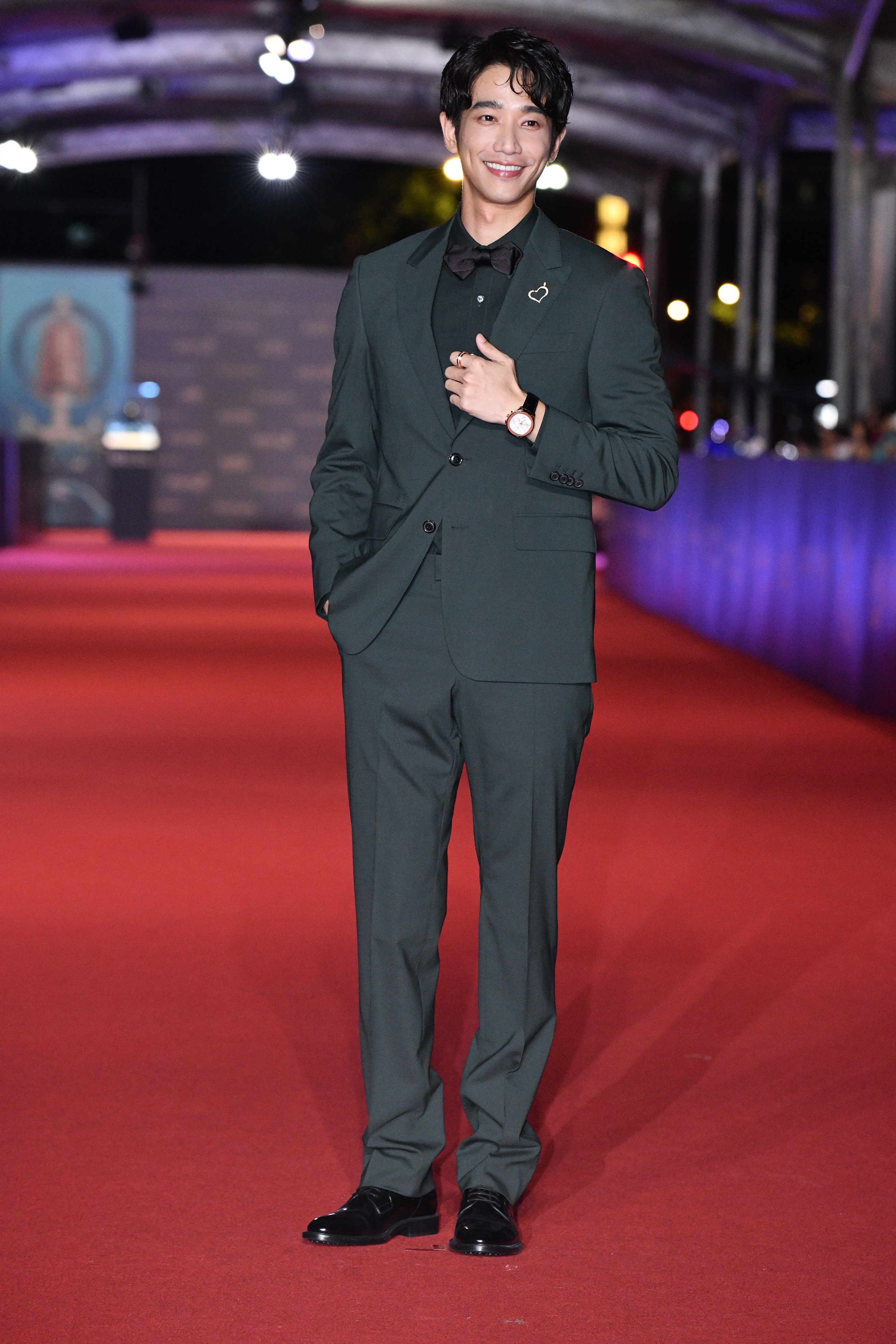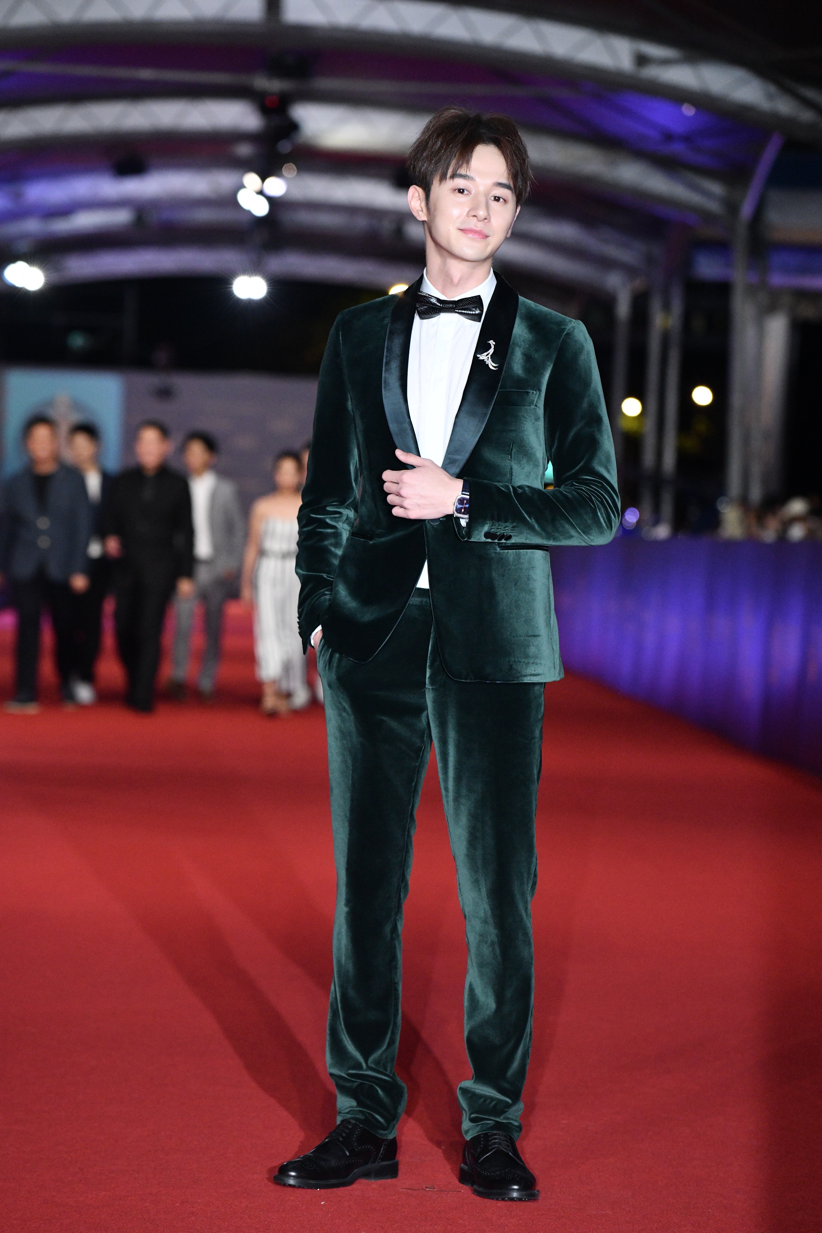 留著小平頭的小鬼黃鴻升,以難得正經的全套西裝步上紅毯,線條比例之精準,令他看起來胸膛寬闊、身型挺拔而修長,搭配雙層蝴蝶領結在帥氣中帶有俏皮玩心。