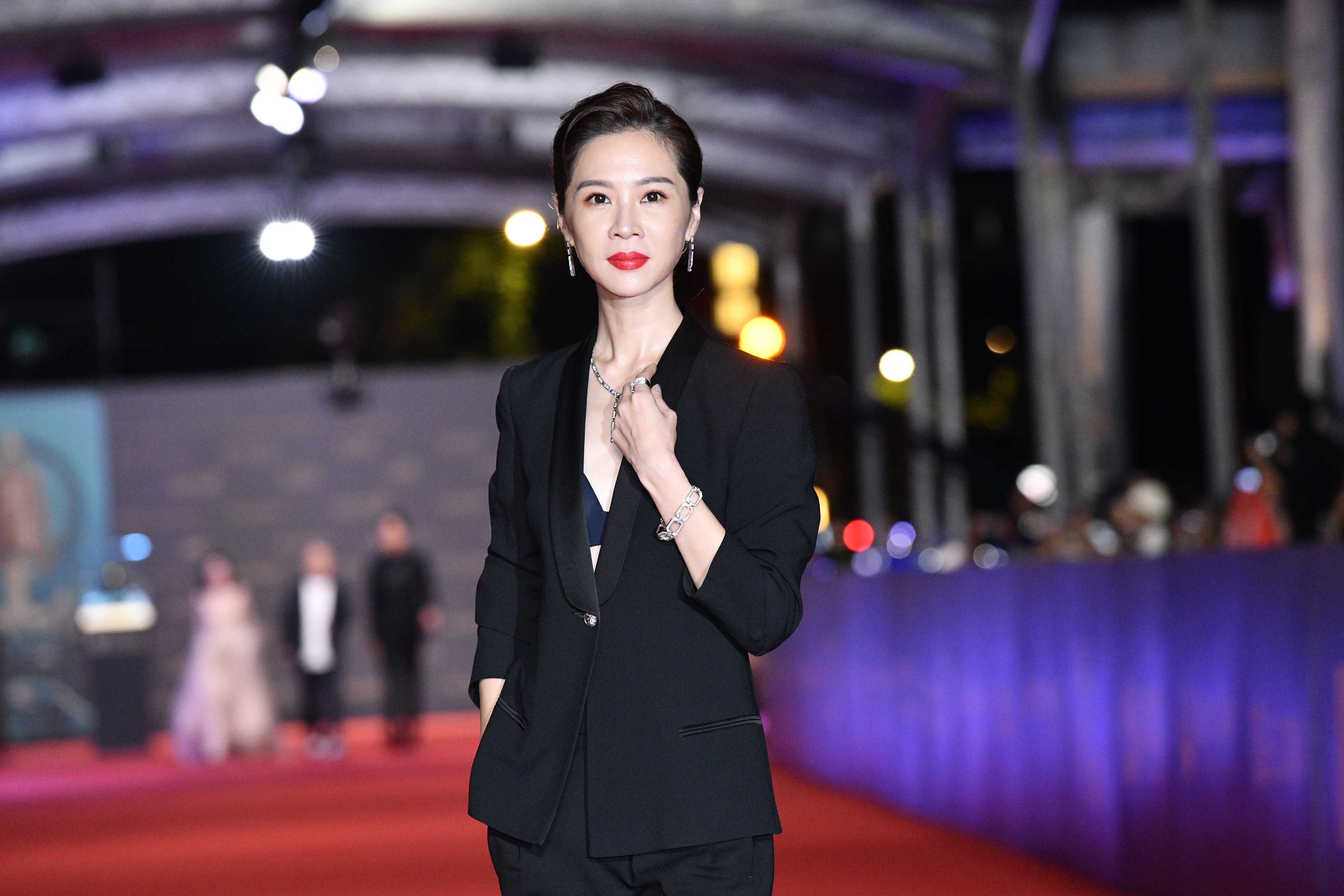 入圍「迷你劇集最佳女配角獎」的林意箴,以一身璀璨銀色深 V 修長禮服現身,裙襬性感超高開衩到大腿深處,佩戴海瑞溫斯頓 Harry Winston 錦簇鑲嵌 Chandelier 鑽石耳環,Sparkling Cluster 絢漪錦簇系列鑽石手鍊及戒指,漂亮俐落。