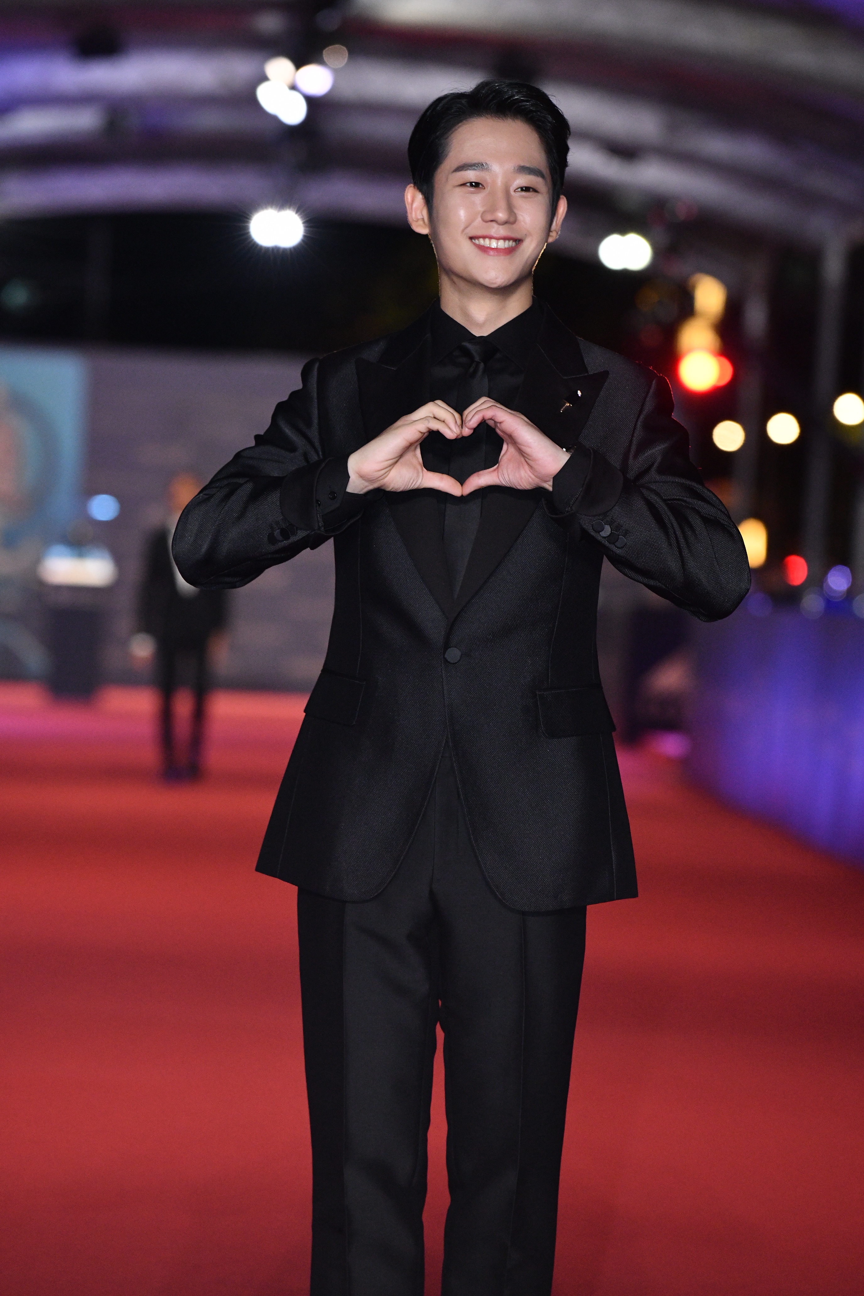 韓國知名男星丁海寅,一身酷黑西裝佩戴寶格麗 BVLGARI Gelati 系列玫瑰金胸針,以冰棒咬一口的俏皮造型鑲飾縞瑪瑙及密鑲鑽石,他在紅毯上笑容不斷、頻頻放送愛心,誠意十足。
