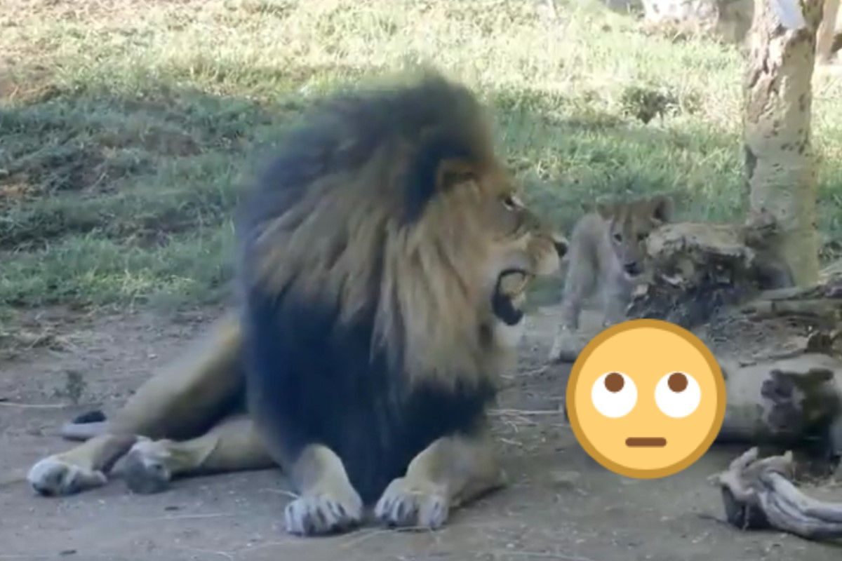公獅想休息卻遭屁孩狂騷擾牠怒吼一聲幼獅竟「綜藝摔」!