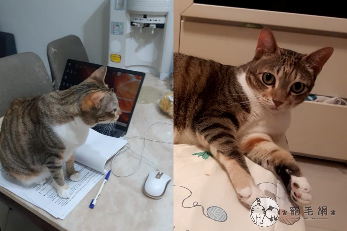 橘子是今年五歲的女生,在一歲左右時從流浪動物之家被鄭小姐收編,因為以前在街上流浪的經歷,個性比較害羞、怕人,必須被牠「慧眼」掃描過,認定這人不錯才會對其展開心房。5月17日鄭小姐開始執行在家上班,早上通常是最繁忙的時候,不久後還有個連線會議要開,可橘子突然就往桌上一跳,一屁股坐在開會資料上頭,鄭小姐趕緊將牠抱下,但不久後又跳上去,還有模有樣地看著電腦,儼然要幫鄭小姐開會的姿態!