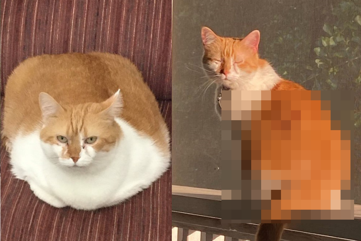 橘白貓「佩特拉(Petra)」在去年三月時被收編,當時身材圓潤,趴下來彷彿一顆飽滿的方形抱枕,雖然模樣可愛,但過度肥胖的身形代表健康指數亮紅燈,腳踝也會難以承受身體的重量而受傷,於是奴才決心幫牠減肥,經過一年不懈的努力,佩特拉成功從8公斤減至5公斤(18磅減至11.5磅),搖身變為一隻瘦瘦貓。