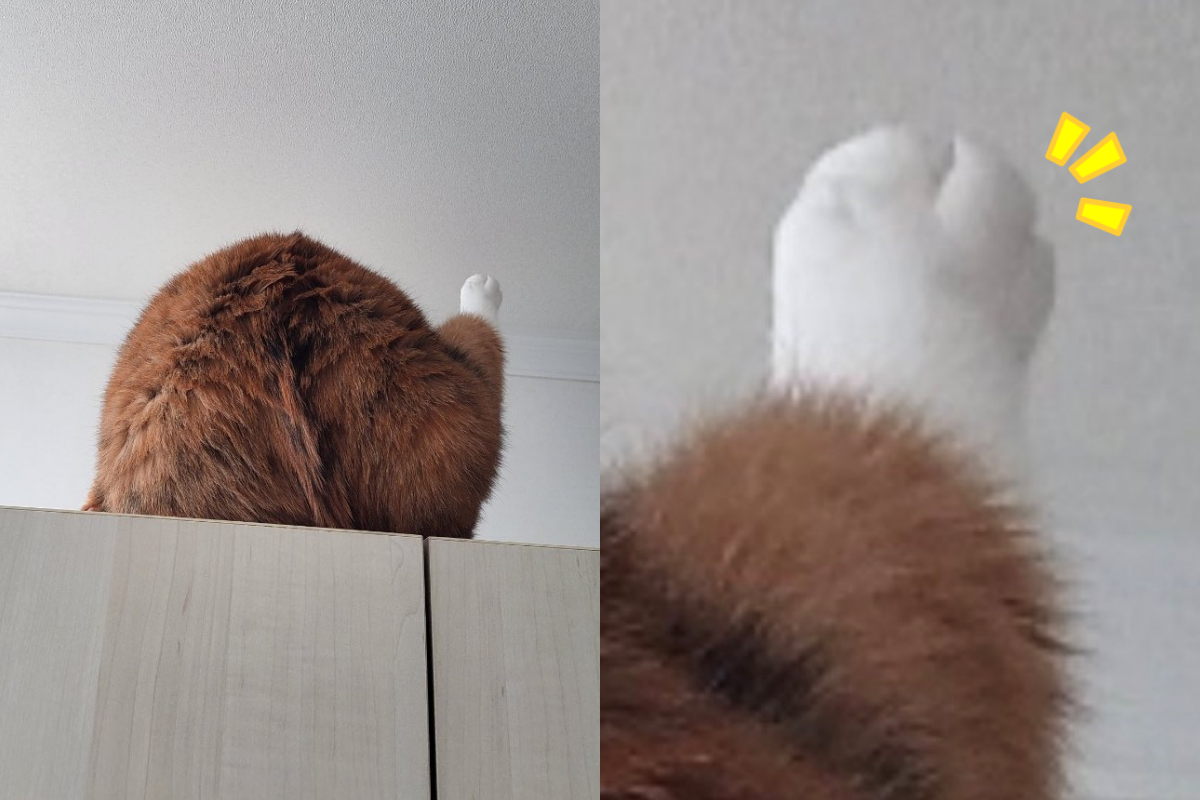 貓貓是不是偷接業配!韓國網友家養了隻四歲左右的三花貓「核桃(호두)」,某天牠坐在衣櫃上舉腳舔肚肚的毛,被奴才從後方偷拍,結果發現核桃的背面意外很像烤雞,發上社群平台後讓網友看了紛紛直呼:「我餓了!」。