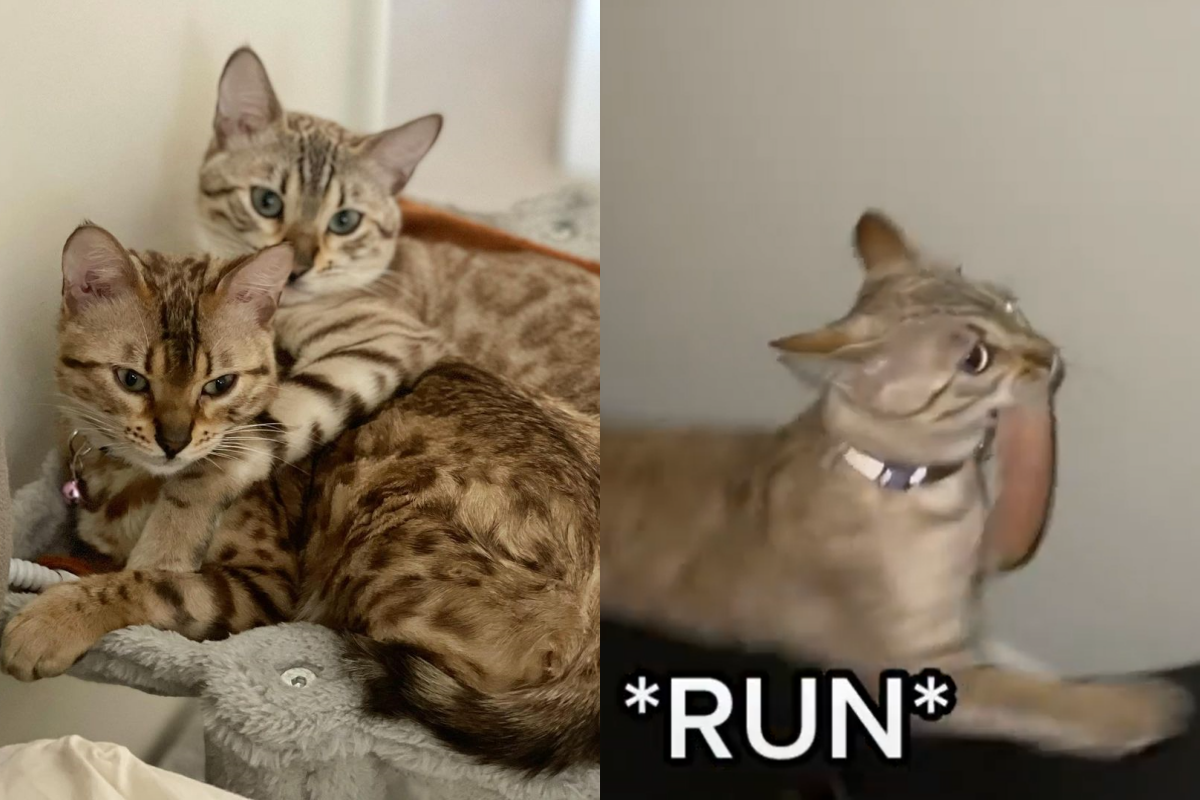 貓咪啊!你知道滾輪的作用是什麼嗎?國外網友養了一對孟加拉貓姊妹花,這天奴才正在廚房中忙碌,嘴饞的貓貓聞到雞肉香味後,不受控制地跳上桌面,叼著雞肉跑走,奴才見狀不但不生氣還笑著跟上去,可貓貓以為到嘴的雞肉要被搶走,便火速往牆邊跑,可萬萬沒想到,牠選擇的這條路是一條「死路」!讓大家看了都說:「這下真的溜不掉了吧!」。