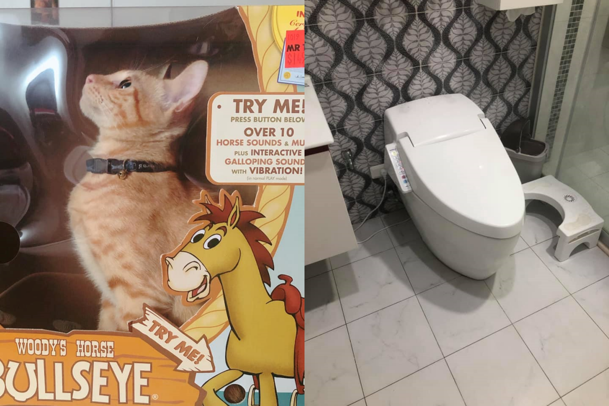 辛巴在馬桶底下的空間躲得很開心。(圖/網友鍾米修授權提供)