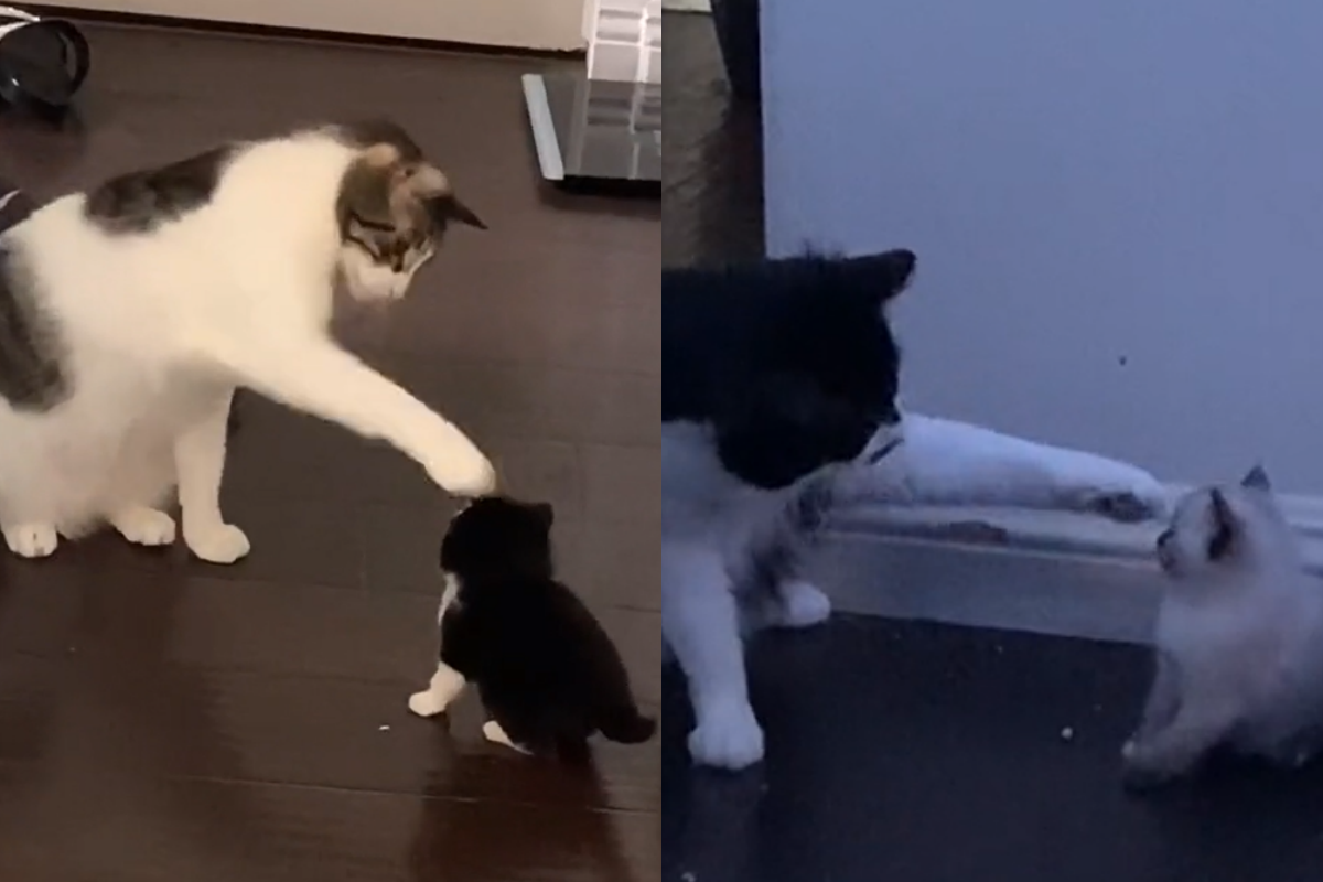 學起來了!國外網友養了一隻賓士貓「路西法(Lucifer)」,從小便將牠帶到大,還幼時的小貓懵懵懂懂、動作緩慢,大貓便坐在面前用手推推牠的頭,時不時還微微的拍打小貓,動作輕柔地像是撫摸一般,沒想到這幕被路西法記了起來,待牠長大也遇到一隻小貓,同樣的一幕神奇重現了!