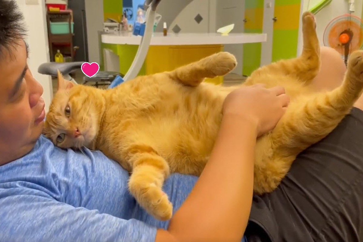 影/橘貓翻肚任人「上下搓揉」爸笑:我有這樣的貓你沒有!