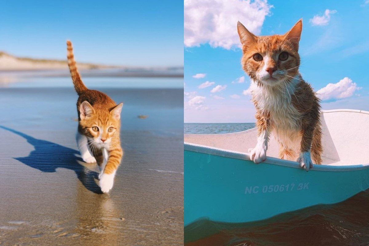 橘貓從小與狗一起長大熱愛游泳乘船:我是海灘boy!