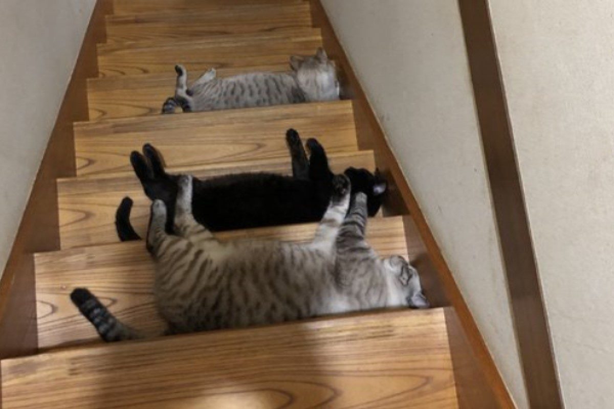 這還讓不讓人好好下樓?日本一名多貓家庭的奴才某天在網路上抱怨,平時在家很容易受到貓咪的「陷阱騷擾」,網友一看照片全都笑說:「完全能了解推主的心情」,究竟發生什麼事呢?