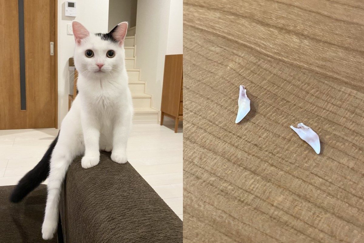 不知道大家有沒有蒐集主子毛髮的習慣?日本一名推主養了一隻黑白貓「Takeru(たける)」,正值好奇心強的牠每天都在家裡爬上爬下找東西玩。日前推主突然在地上發現兩個尖尖的物品,原以為是Takeru弄壞了什麼,網友一看卻都驚呼:「撿到寶了!」。