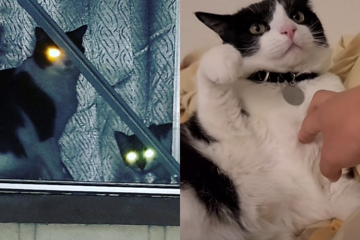 兩隻貓咪分別是賓士貓「咪咪(Mimi)」和虎斑貓「小藍(Blue)」,牠們感情緊密,一天24小時幾乎都膩在一起,奴才就時常看到牠們做出相同的動作,可謂非常心有靈犀。這天又看到牠們一起窩在床上說悄悄話,頑皮的奴才衝上前打擾牠們,伸出手左戳戳、右摸摸,雖然咪咪和小藍沒有露出極其厭惡的表情,但後退的動作和冰冷的眼神都透露出牠們的拒絕!