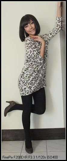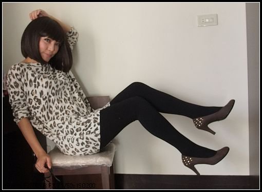 豹紋長板毛衣+黑色內搭褲襪(高丹數)