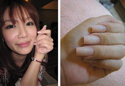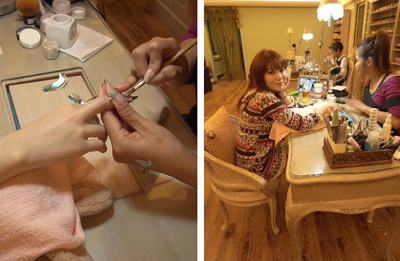 ↑ 美甲師正在幫小草莓做水晶指甲。