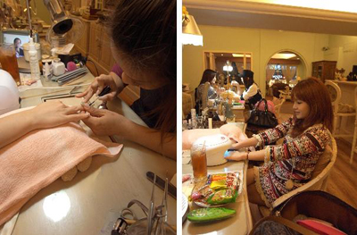 你可以邊吃點心邊輕鬆自在的瞭解服務項目或挑自己喜歡的甲片顏色。(很棒吧!?