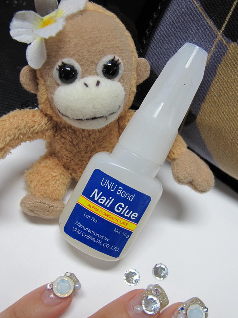 4.掉鑽的處理,其實在做水晶時,你可以請美甲師多給你一些你指甲上的鑽,利用專門黏水鑽的膠,自己在家裡也可以簡單做修補噢。