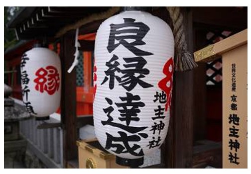地主神社是一個求好緣份的地方,每年都有很多女生喜歡來這邊拜拜求籤。