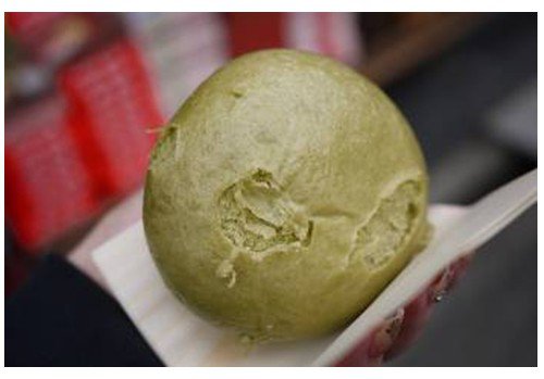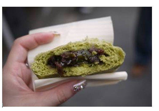 剖面圖來一張! 內餡是抹茶麻糬混紅豆沙,不會太甜,口感中合起來很剛好~ 好吃!