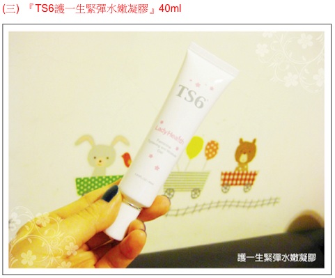 (二)『TS6護一生粉嫩淡色凝膠』&(三)『TS6護一生緊彈水嫩凝膠』使用完的差別是(三) 『TS6護一生緊彈水嫩凝膠』比較水,有點像雪花在高溫的蓋子上,擦上私密肌膚後馬上會因自體體溫而融化,非常好推,擦完後可明顯感覺濕潤中不失乾爽。