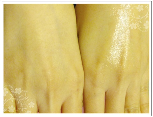 噴兩下出來的量約像左圖,擦拭後的肌膚約像右圖。