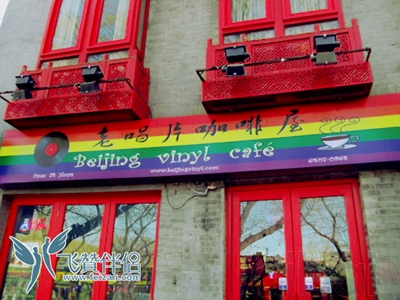 位于北京鼓樓東大街的老唱片咖啡屋,彩虹的招牌讓人感覺很親切