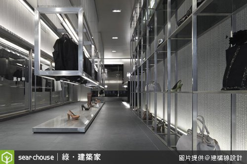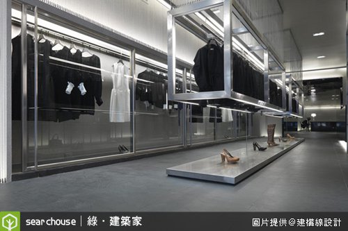 運用單一元素的概念,Gallery More店內採用黑色與灰色的打造出具有深度的層次感,沈靜的黑色與具磁性的灰色,使在店內逛街的民眾感受到更深層的視覺藝術體會;而店內也採用大片玻璃 與黑色的壓克力,將空間的延展性規劃更充足。藉由鋼索所代表服飾的線、放在櫃中的服飾、及懸掛的衣物,將服飾店規劃像畫廊的感受,讓民眾在逛街時,也像在 觀賞藝術品!