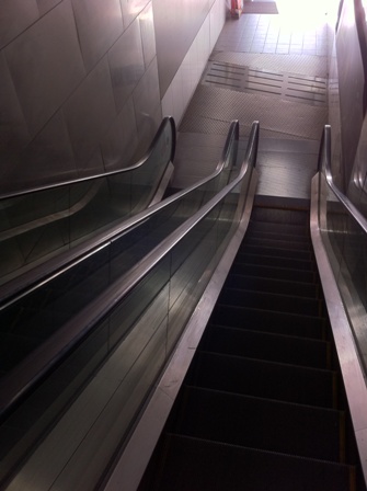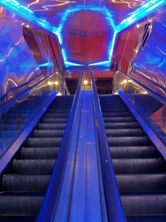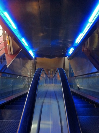 (我想這是令許多人印象深刻的,藍色燈管搭配不銹鋼的手扶梯景觀)