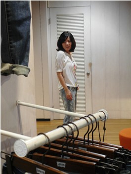 非常有耐心地跟我講解最新的“視覺細”和以往牛仔褲不同的地方。