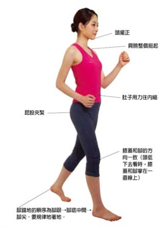 正確的走路姿勢不僅對瘦身有幫助,長時間來看,對身體的平衡和各部位的關節也有正面的影響。持續維持正確的走路姿勢,雖然活動量相同,卻可提高熱量的消耗,而且有助於脊椎和關節挺直,對健康也有幫助。