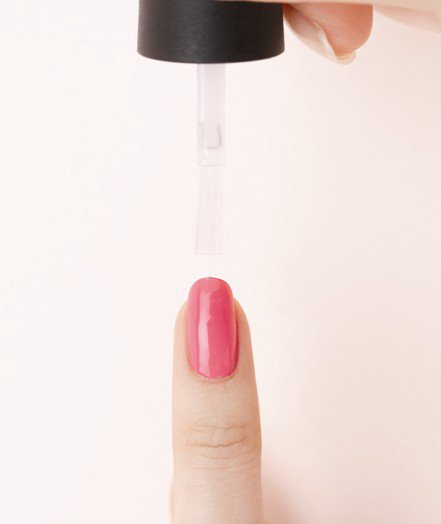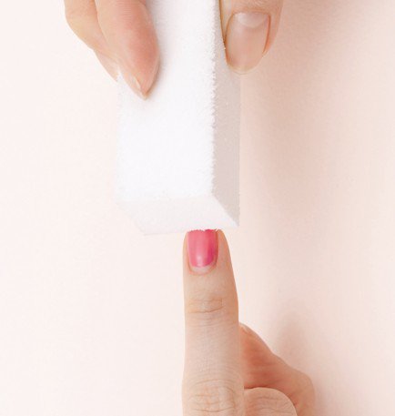 2.按壓至表面變光滑後,塗抹上護甲油即可。這個時候如果用刷毛用力塗抹護甲油,反而會產生刷毛的紋理,塗的速度請盡量快一點,且薄一點。