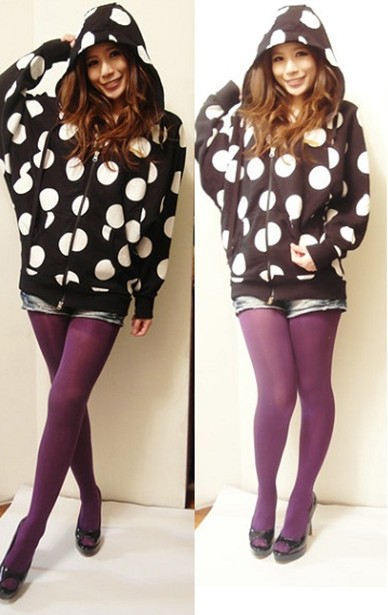 點點加飛鼠袖加帽子,真是集合了所有我愛的元素於一件,屬於運動風的連帽飛鼠外套卻搭了優雅的紫色,是不是另有一種衝突美?