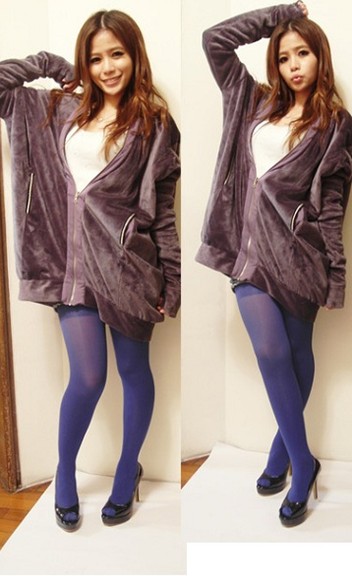 接下來是優雅的紫色,如果覺得前面兩款褲襪都太over,比較害羞的女孩兒,就可以選擇紫色喔!
