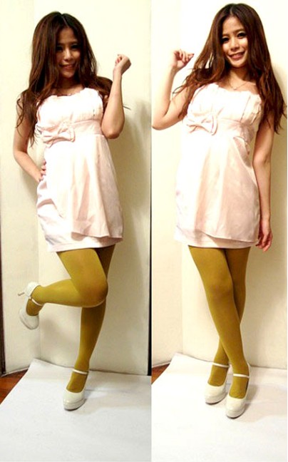 這件是和前面杏色禮服同款不同色的粉色小禮服,女生買東西就是醬,喜歡的衣服,就會忍不住就把所有顏色都帶回家,不過我個人認為這樣的小洋裝很實用,多買幾件沒關係(好啦藉口藉口),粉紅色的禮服很漂亮,但一樣缺乏特色,穿去參加party不夠顯眼,所以搭上芥末黃褲襪,即使是同款的洋裝,換個褲襪,就能穿出不同的感覺喔!