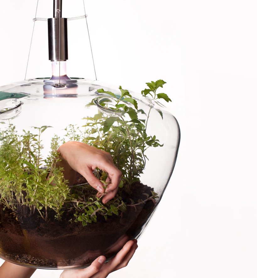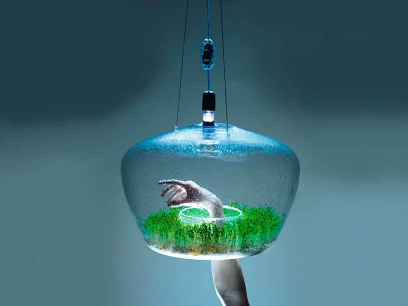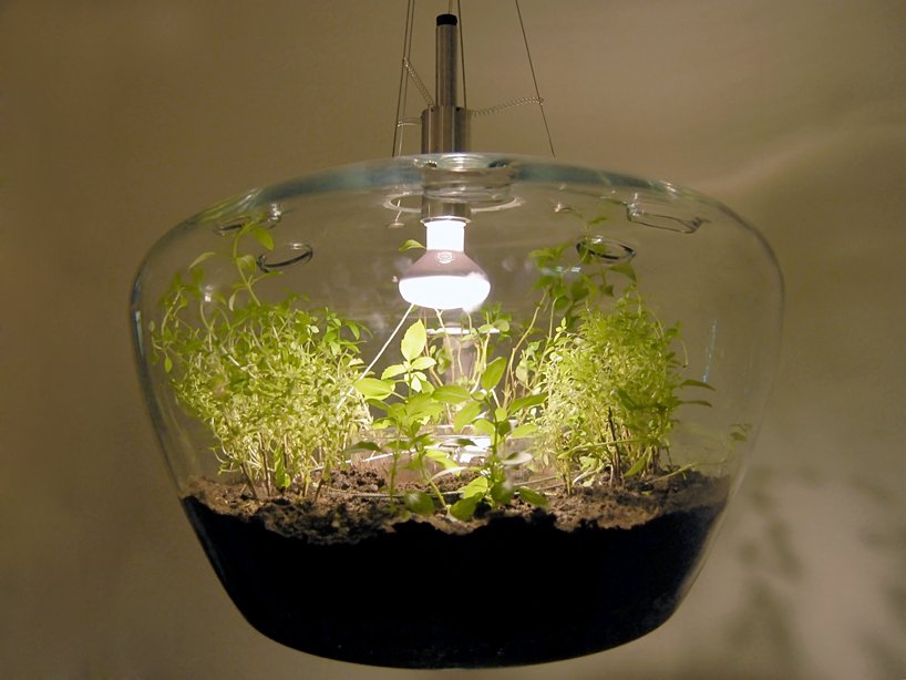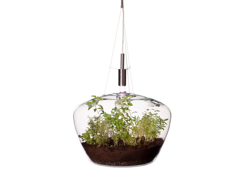 看到這張照片可別被嚇到了,以為是鬼片唬人花招,這可是一件非常優雅又有環保意識的有趣吊燈呢!來自捷克的設計師Kristýna Pojerová匠心獨運設計Glasshouse的吊燈,除了造型特殊,它還可以當作迷你溫室, 成為真正的空中菜園喔!