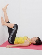 Tips:腿掛牆上、結束起身時的動作都一樣——雙腳屈膝放到身體側邊,側身慢慢抬腿或坐起。