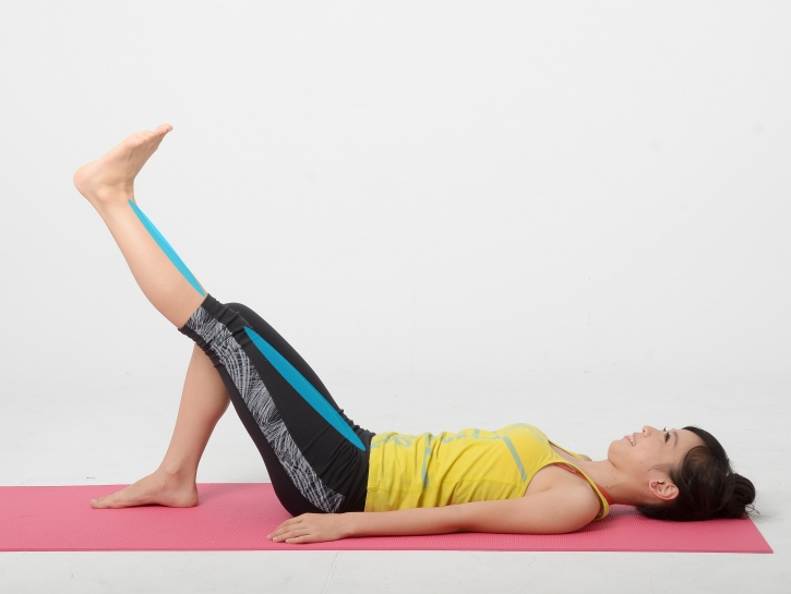 Check:骨盆與腰平放地面,臀部不移動也不抬高,動腿即可。
